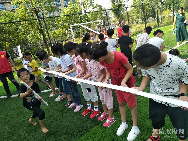 第二部分是主题为“团结就是力量”的户外拓展教育,通过挑竹竿、结对而行、蛟龙出海等游戏,告诉孩子们一个团队或者一个国家能够实现最终的目标,必须团结一致,相互认同和支持。